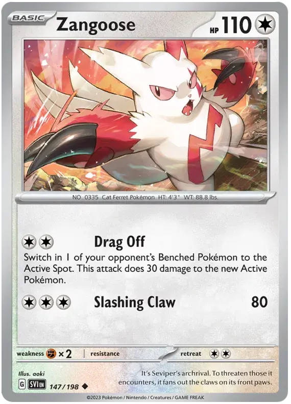 147/198 - Zangoose - Scarlet and Violet Base - Uncommon